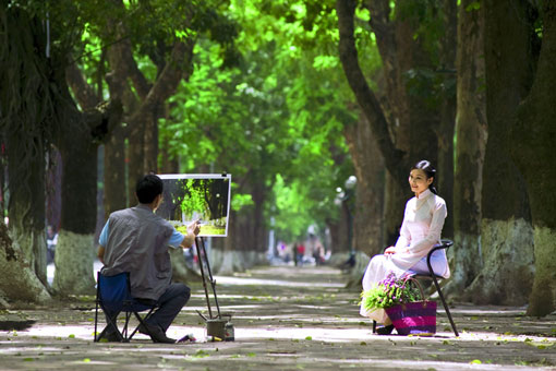 - Chắc lại hình ảnh về một mối tình nào đó rất lớn? Tôi hiểu ý ông nhưng ông biết là tôi rất bận. Tiệc ly, Vinh quy, Vu quy, Hội chùa Hương... Tôi chẳng cần phải suy nghĩ gì cả, cứ thế hái ra tiền như một người thợ. Ông không trả nổi số tiền tôi gác mọi chuyện khác dành thời gian cho pho tượng của ông đâụ