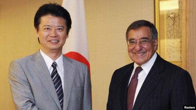 Bộ trưởng Quốc phòng Mỹ Leon Panetta bắt tay Ngoại trưởng Nhật Bản Koichiro Gemba tại Tokyo, ngày 17/9/2012