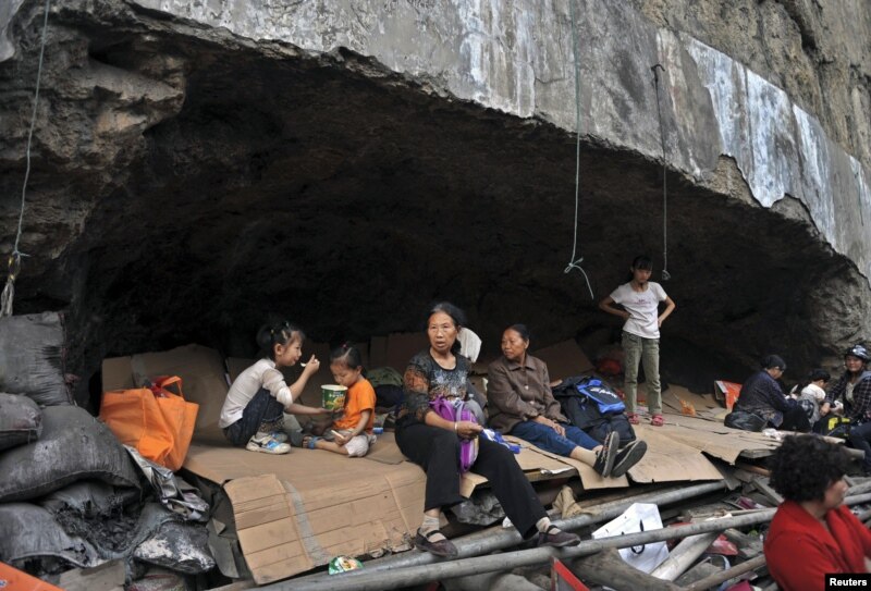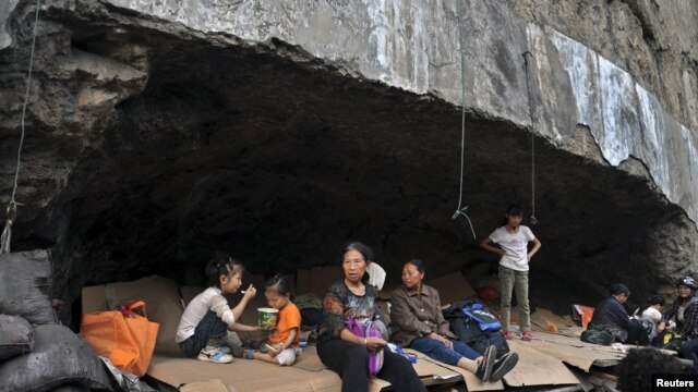Cư dân tạm trú trong một hang đá sau hai cơn địa chấn nối tiếp nhau hai tỉnh Vân Nam và Quí Châu, Trung Quốc, ngày 8/9/2012.